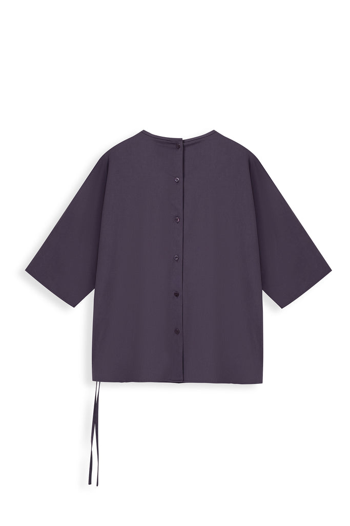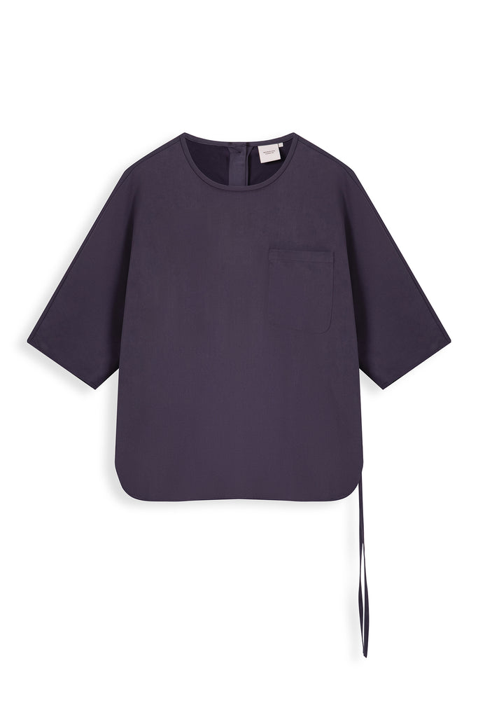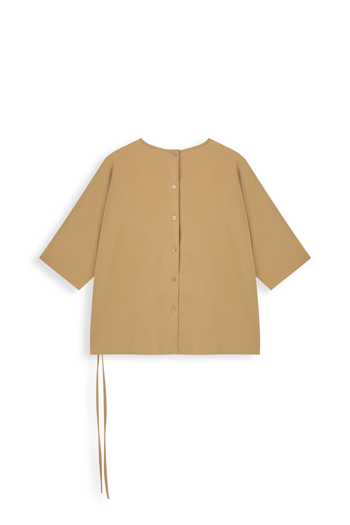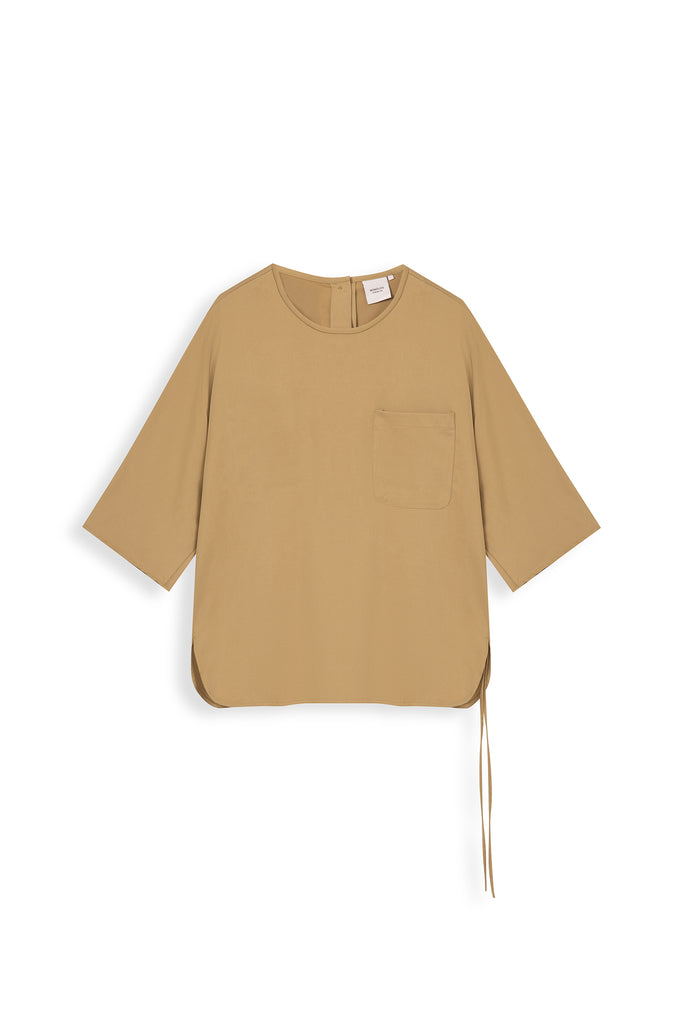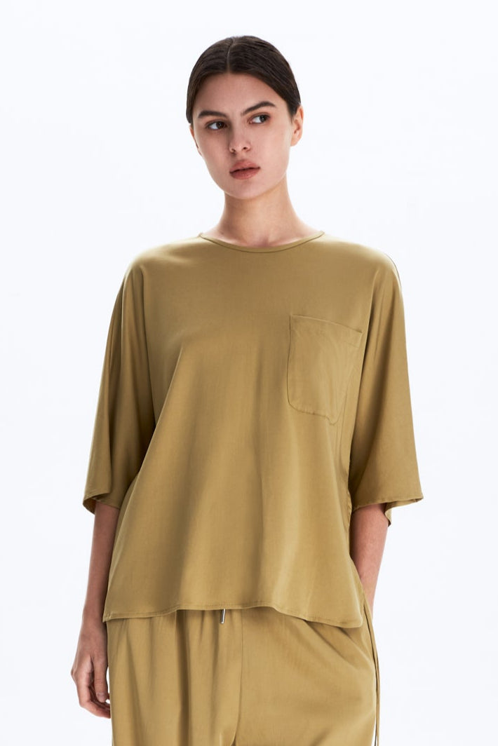 Round Neck Short Sleeve Woven Top
