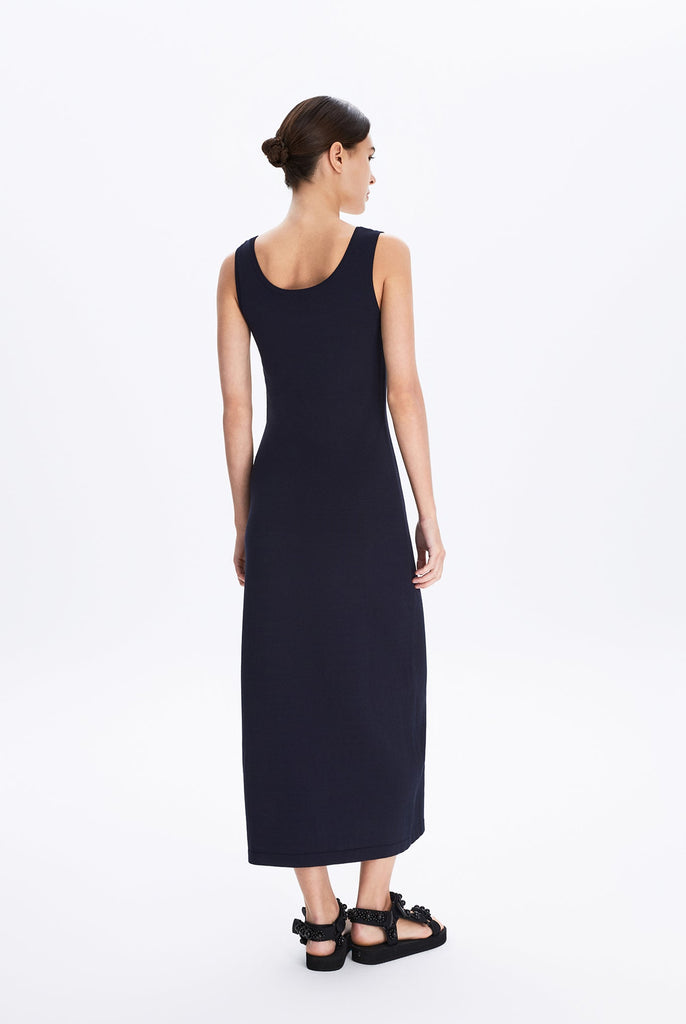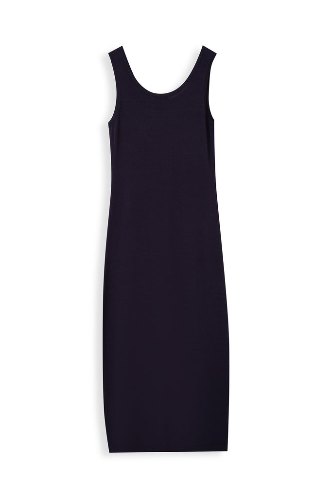 Relaxed, form-fitting sweater knit tank dress that drapes fluidly, embodying MONOLOQ’s understated elegance and effortless modern femininity.
