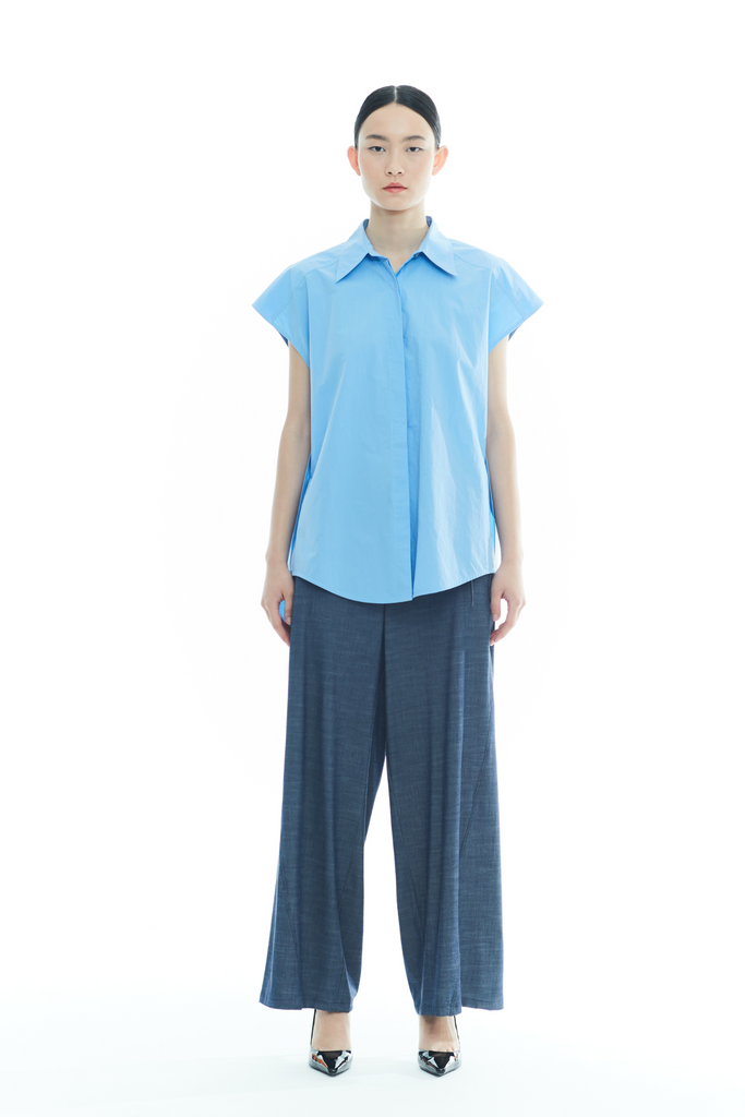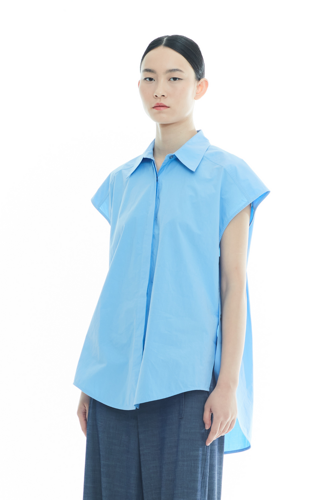Super relaxed sleeveless shirt that is trapexe shaped, wear it tucked in or out, style it with jeans or a slim skirt, it is the ultimate cool shirt for everyday and evenings.