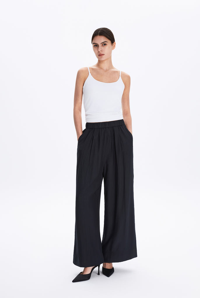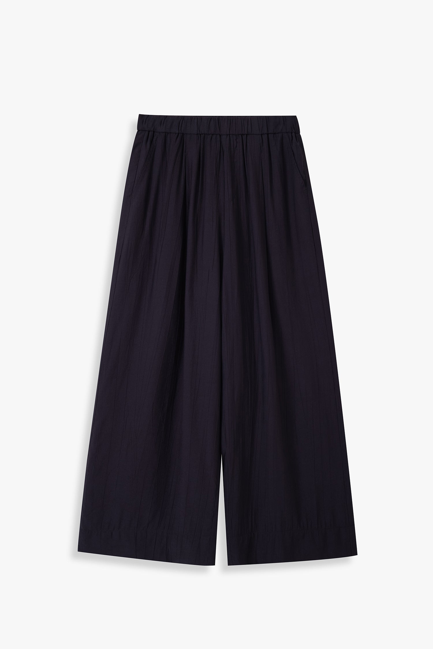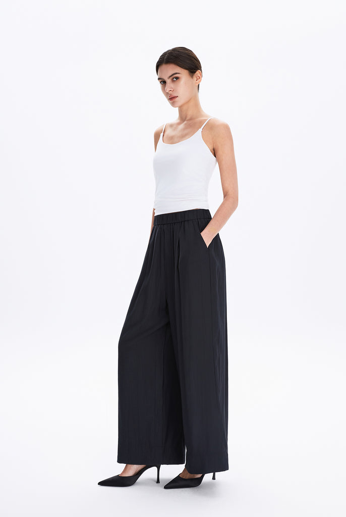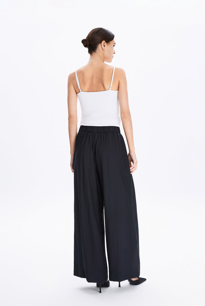 Wide leg trousers with elasticated waist in our favourite crinkled soft textured fabric. Part of our modern take of new city suit.