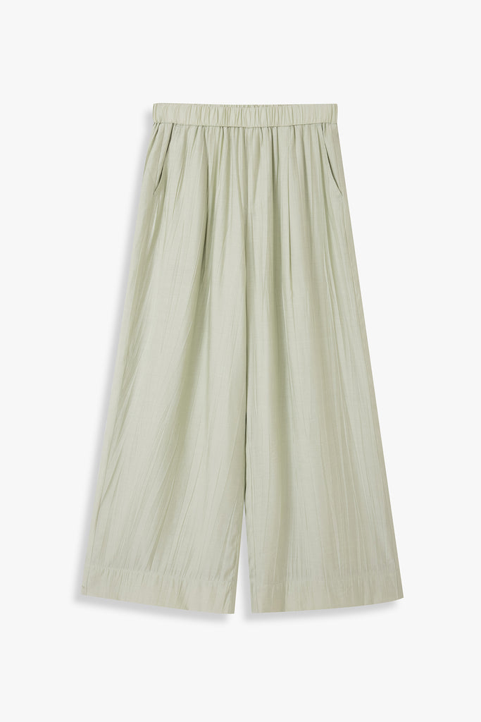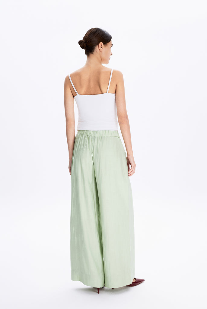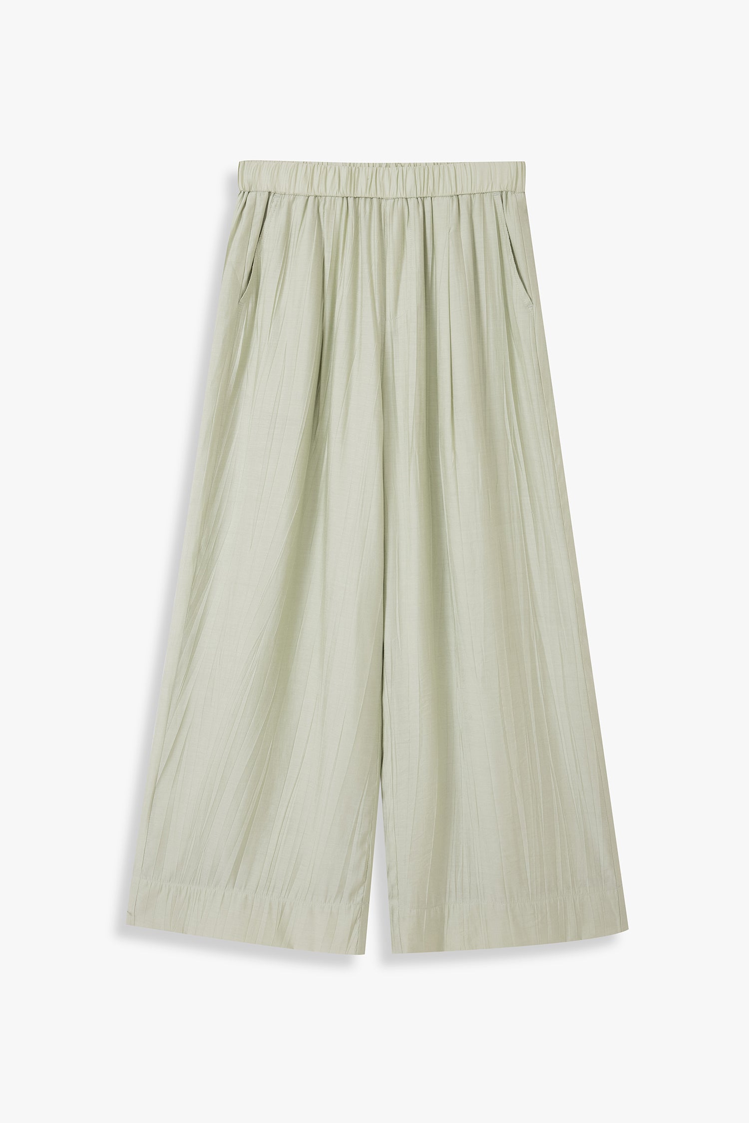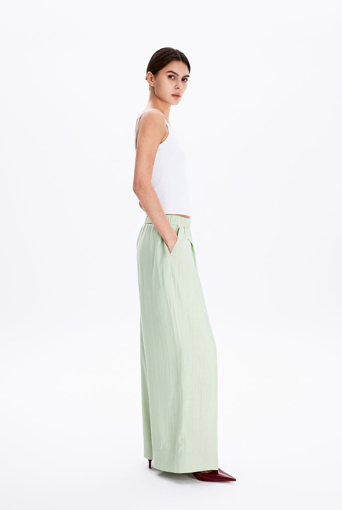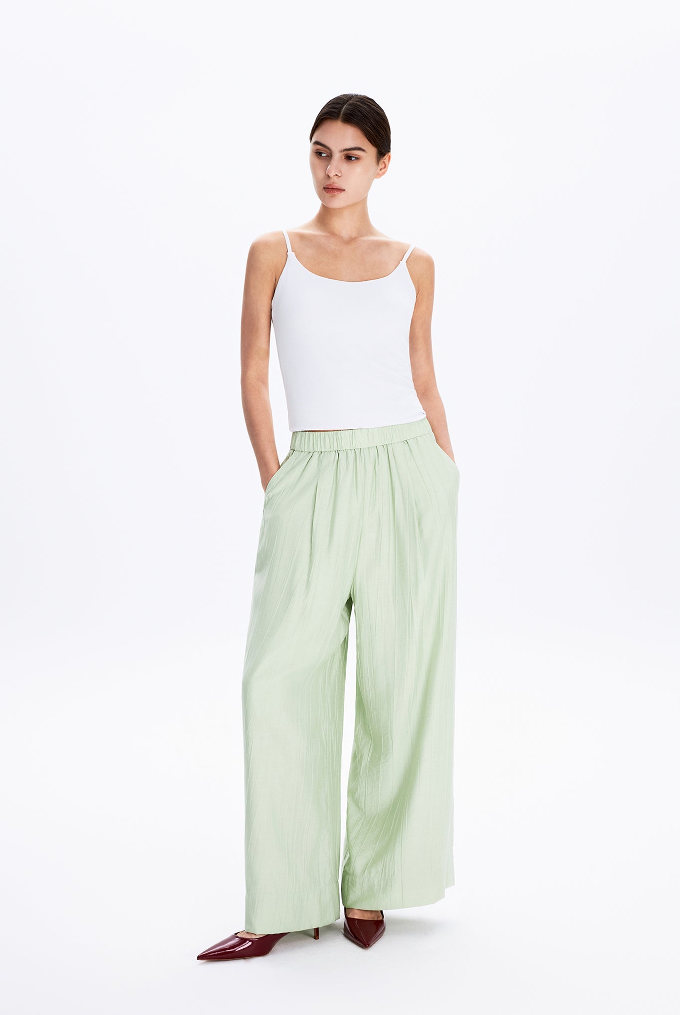 Wide leg trousers with elasticated waist in our favourite crinkled soft textured fabric. Part of our modern take of new city suit.