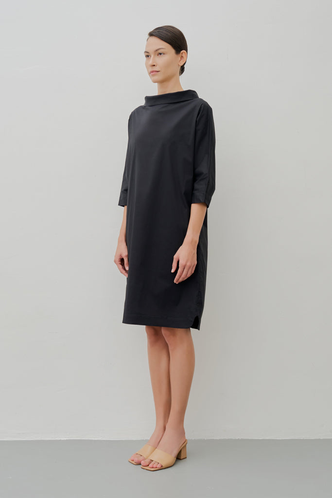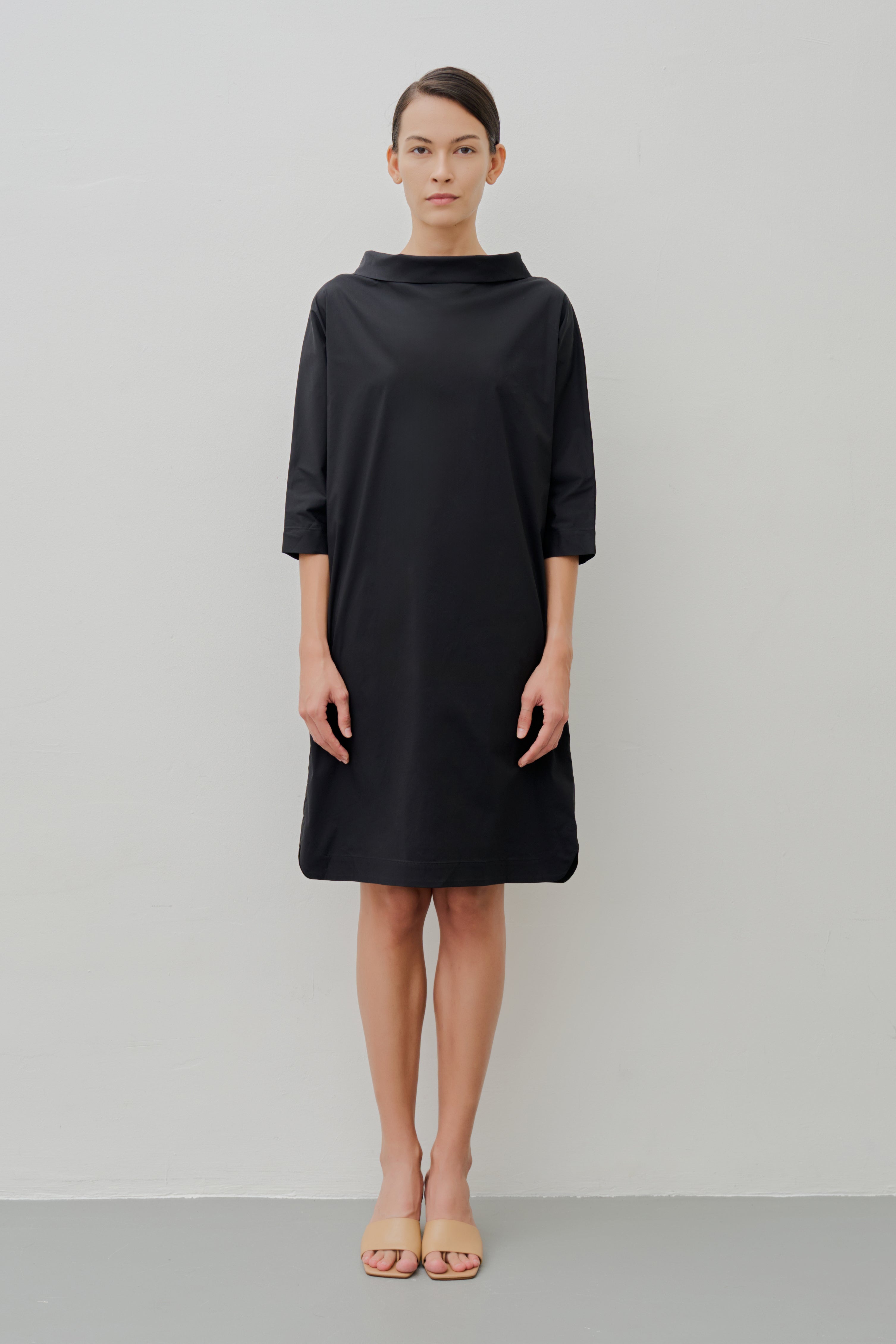 Designed in a comfy straight cut with a Boat stand collar. Crafted from smooth and lightweight cotton blend fabric that is easy on your skin, and designed with back button down details and 3/4 sleeves length. Finished with a small matte metal snap buttons at the back, and two side pockets for all your daily essentials.