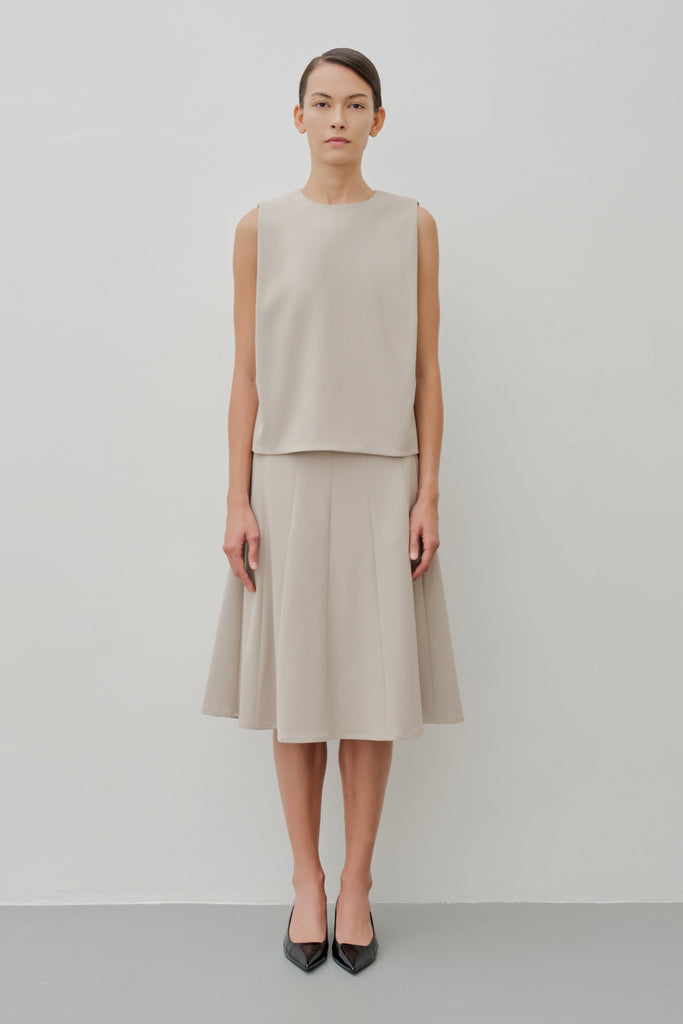 Our cotton panelled skirt is cut to flow beautifully as you move, made for brunches and afternoon tea. Skirt is fully lined and secured with a concealed side zipper.