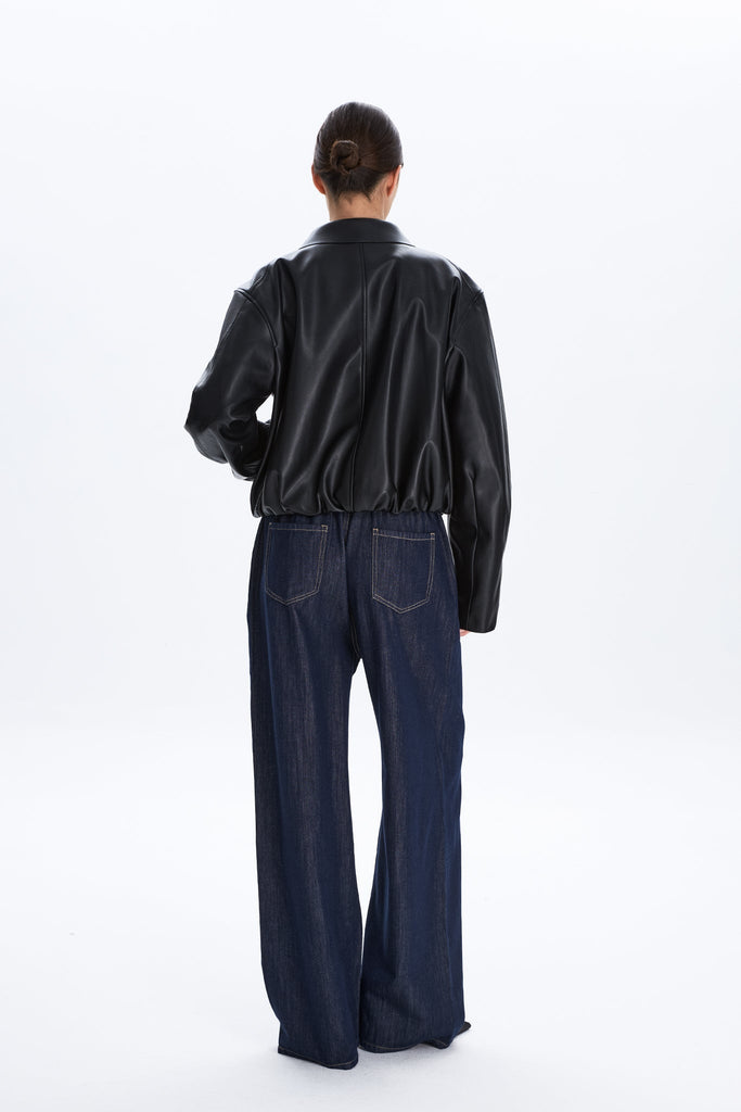 Edgy black PU leather moto jacket, dripping with cool. Dual-Zipped details & soft silhouette for ultimate downtown, fashion-forward attitude.