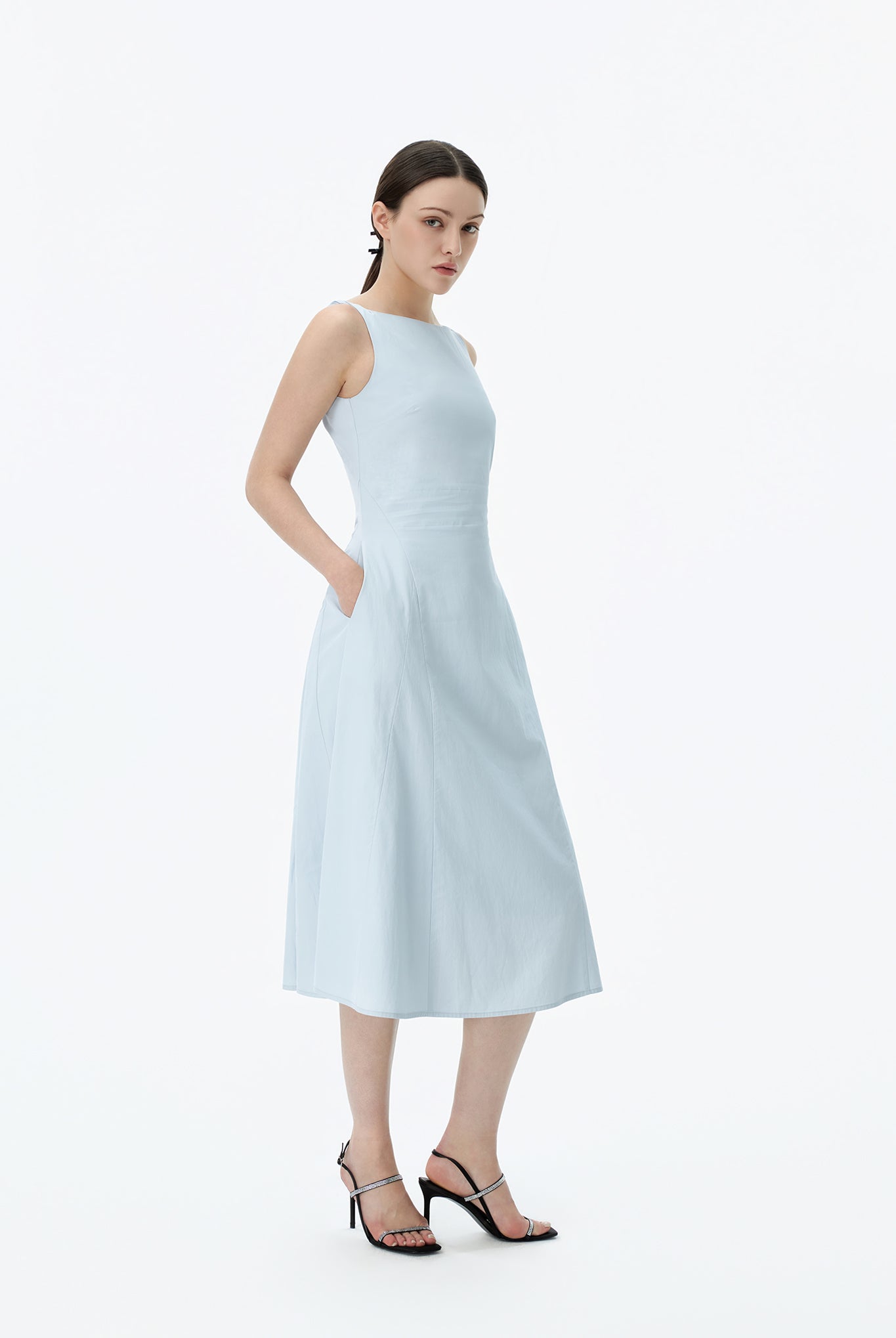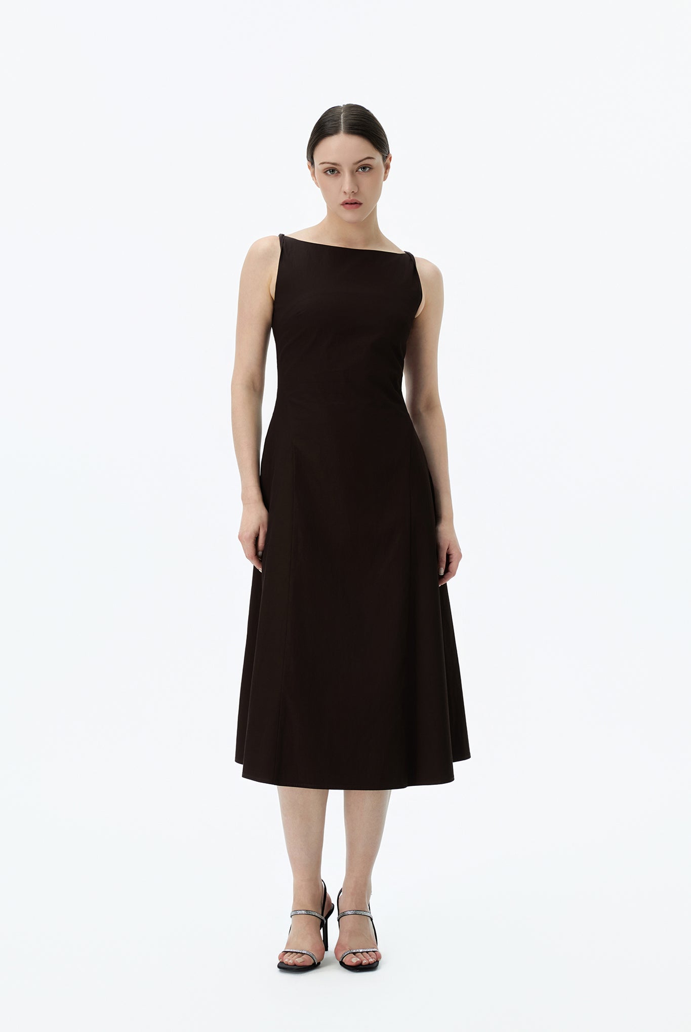 Boat Neck A Line Midi Dress